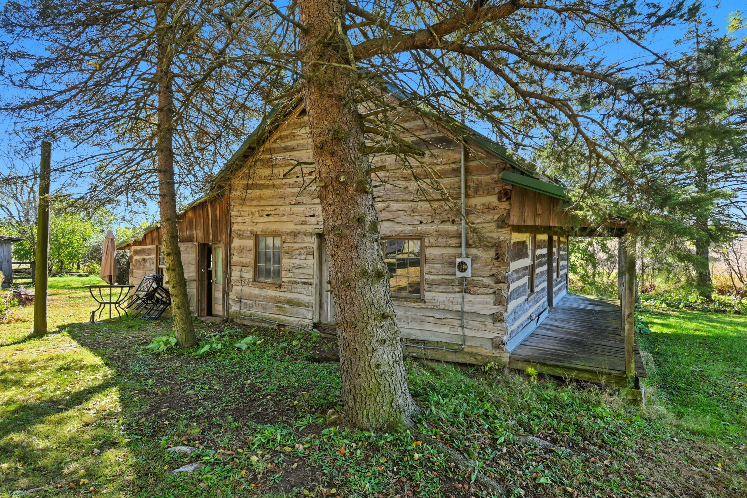 Historic Log Cabin and Smokehouse add heritage, character, and visual appeal to the property.